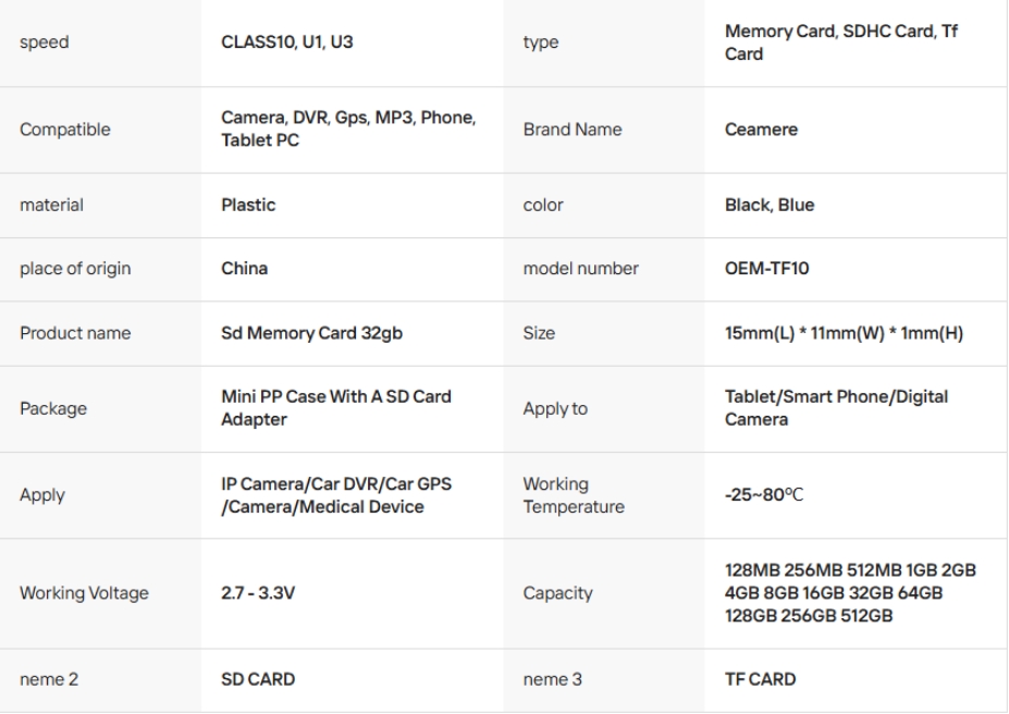 Tf Card Memory SD Card 32GB 64GB/128GB Class 10 Phone DVR SD Card 16GB